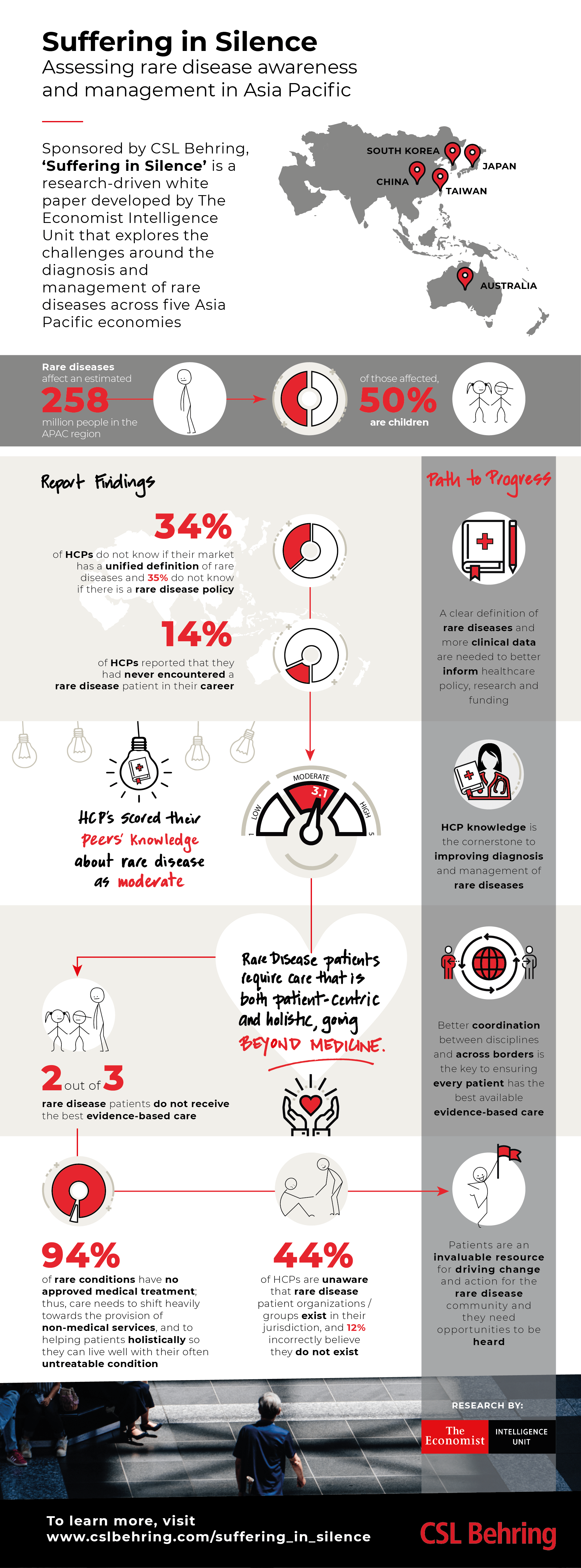 CSL Behring commissioned The Economist Intelligence Unit (EIU) to explore the state of rare-disease understanding and management throughout the Asia-Pacific region